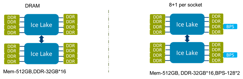 说明:BPS84,每颗CPU配置8根DRAM+4根BPS;BPS44,每颗CPU配置4根DRAM+4根BPS。