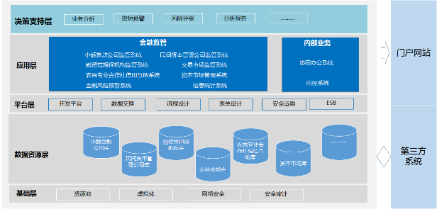 主要包括搭建在应用支撑平台上的应用系统,包括:小额贷款公司监管系统、民间资本管理公司监管系统、融资性担保组织监管系统、交易市场监管系统、农民专业合作社信用互助业务监管系统、资本市场管理系统、金融风险预警系统、信息统计系统、内部业务处理系统。