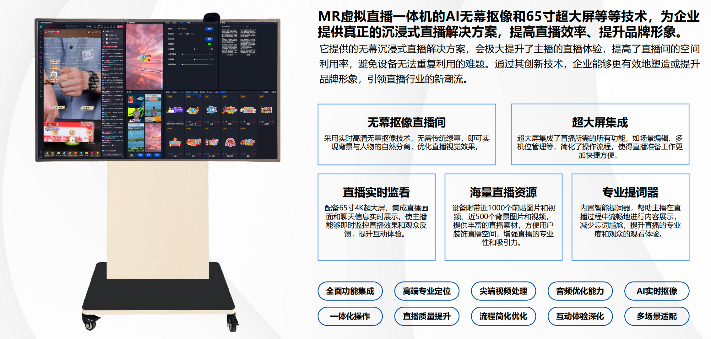 ·无幕抠像直播间,采用实时高清无幕抠像技术