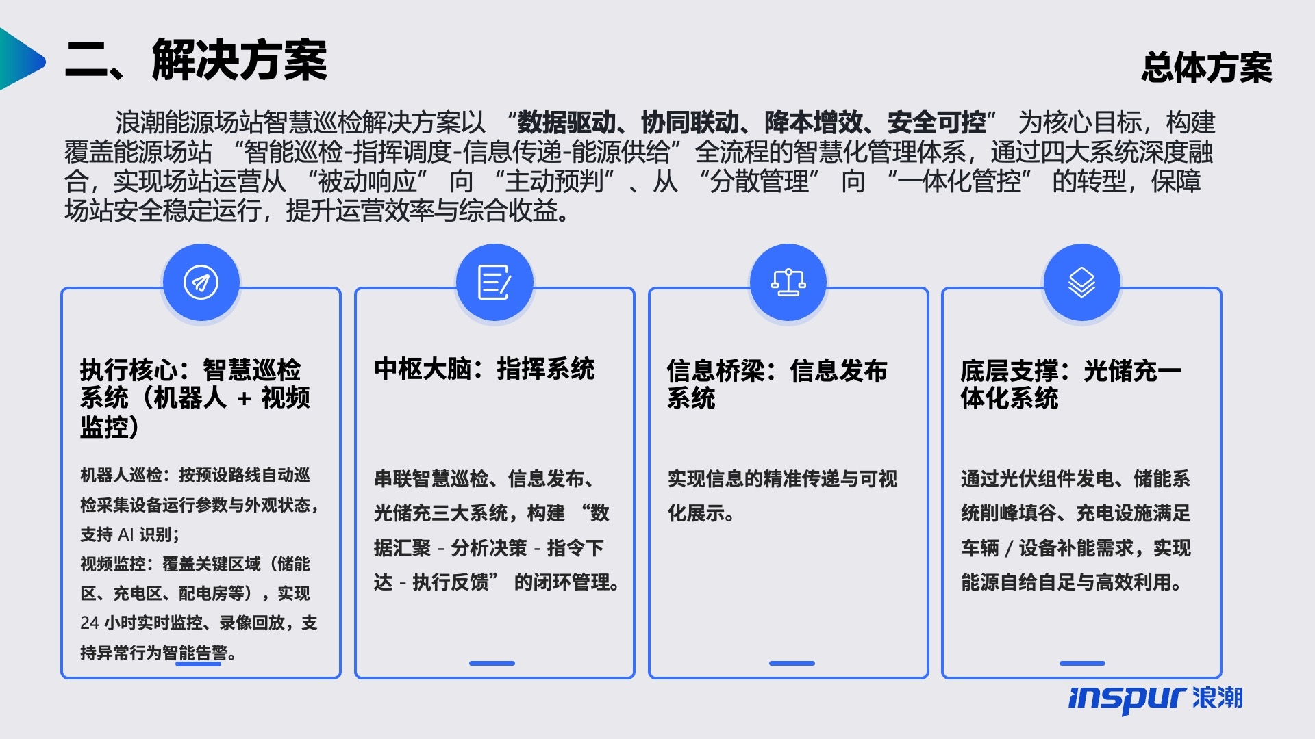 贝斯特全球奢华能源场站智慧巡检解决方案以 “数据驱动、协同联动、降本增效、安全可控” 为核心目标,构建覆盖能源场站 “智能巡检-指挥调度-信息传递-能源供给”全流程的智慧化管理体系,顺利获得四大系统深度融合,实现场站运营从 “被动响应” 向 “主动预判”、从 “分散管理” 向 “一体化管控” 的转型,保障场站安全稳定运行,提升运营效率与综合收益。